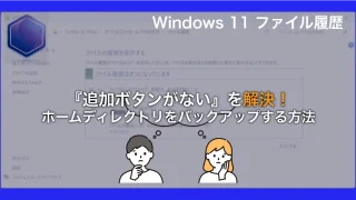 Windows 11のファイル履歴で、ユーザーフォルダー(ホームディレクトリ)を追加する方法を解説。「追加ボタンがない」問題をライブラリ機能で解決します。容量を圧迫するAppDataの賢い除外設定やバックアップのコツも紹介。大切なデータを確実に守りましょう。