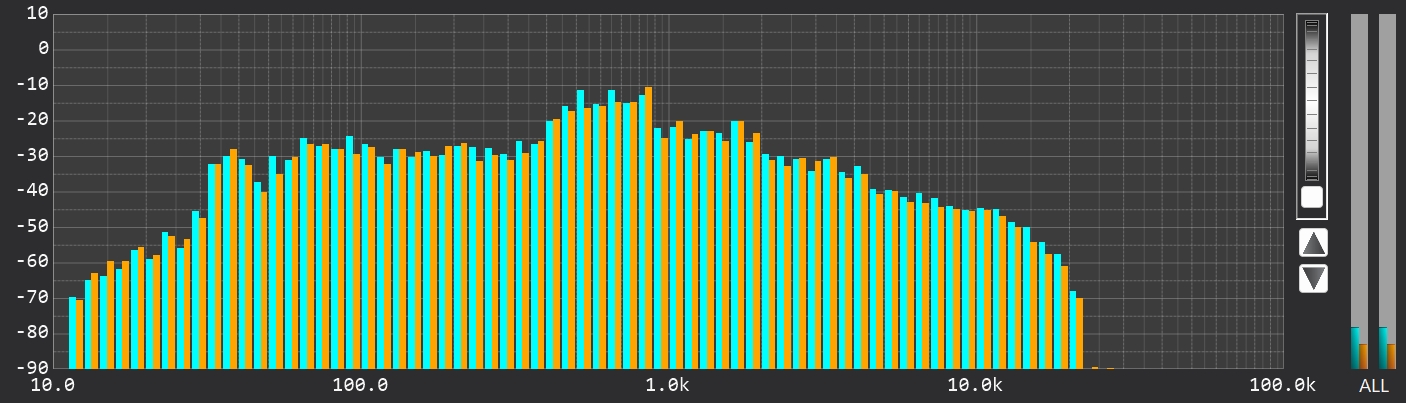 興味深いのが30kHz以上の挙動です。楽曲が盛り上がるポイントで、30kHz以上の帯域に一定レベルの成分が出現します。 SoXを用いて -3dBのATT(アッテネーター) を入れて再解析しましたが、この挙動に変化はありませんでした。つまり、リサンプリング時の計算エラーではなく、「元の192kHz音源の時点で、ピークが飽和(クリップ)し、それに伴う高次の高調波成分が超高域まで派生している」可能性が極めて高いと言えます。
