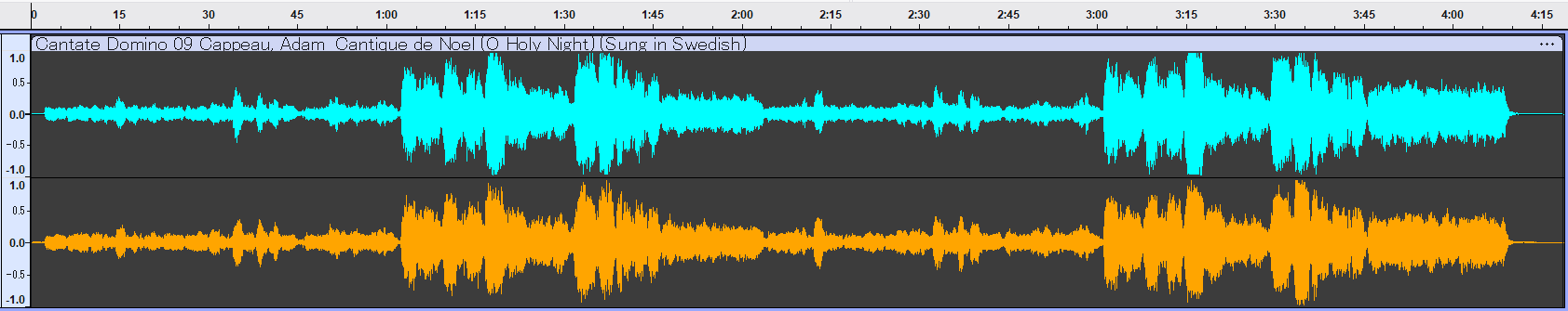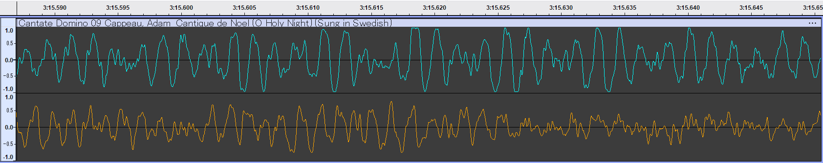 まず、それぞれの波形を比較してみましょう。ターゲットは、アルバム中最も有名な**「O Holy Night (O Helga Natt)」**です。