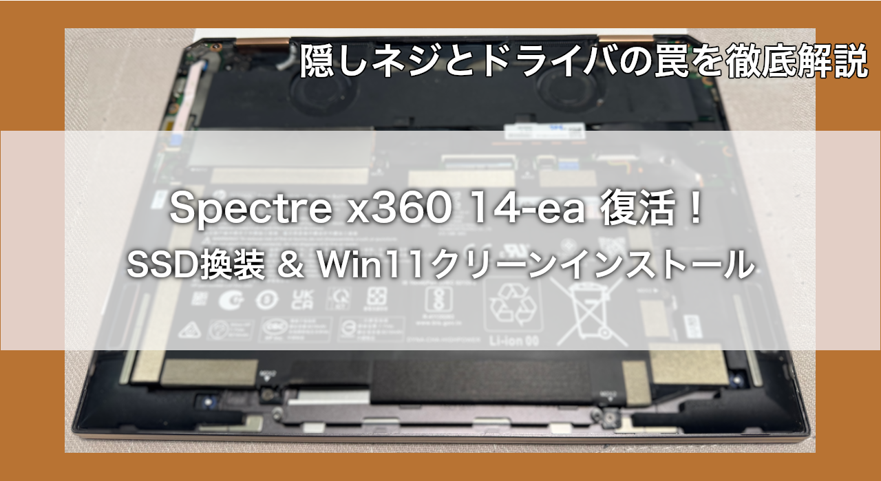 大学生の家族が卒論執筆中に愛用していた HP Spectre x360 14-ea0047TU が突如沈黙しました。症状は「バッテリー充電不可」と「HPロゴでのフリーズ(OS起動不可)」。