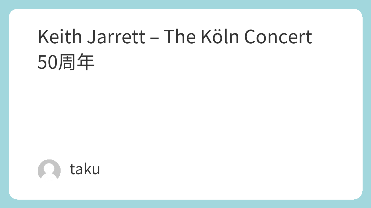 50年前、当時のFM東京で日曜日の23時から故・岡田真澄氏がDJをされていた「夜のみちくさ55分」という番組がありました。中学生だった私は就寝前に毎週聴いていました。この番組のテーマ曲が「ケルン・コンサート Part I」の冒頭部分でした。演奏者も曲名も知りませんでしたが、なんとも言えない神秘的な綺麗な曲でした。そのうちに番組で “Part I” 全曲が放送されキース・ジャレットというピアニストの「ケルン・コンサート」というアルバムと紹介されました。